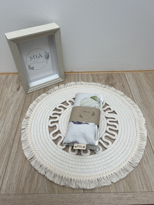 Fabrication artisanale, cousue à la main dans un tissu 100% coton et garnies de graines de lin.