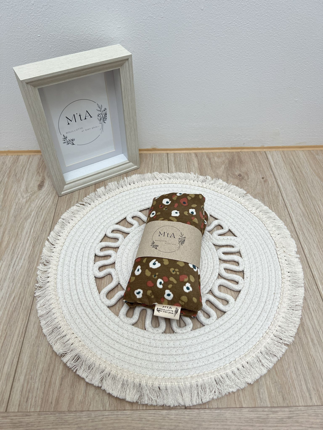 Fabrication artisanale, cousue à la main dans un tissu 100% coton et garnies de graines de lin.
