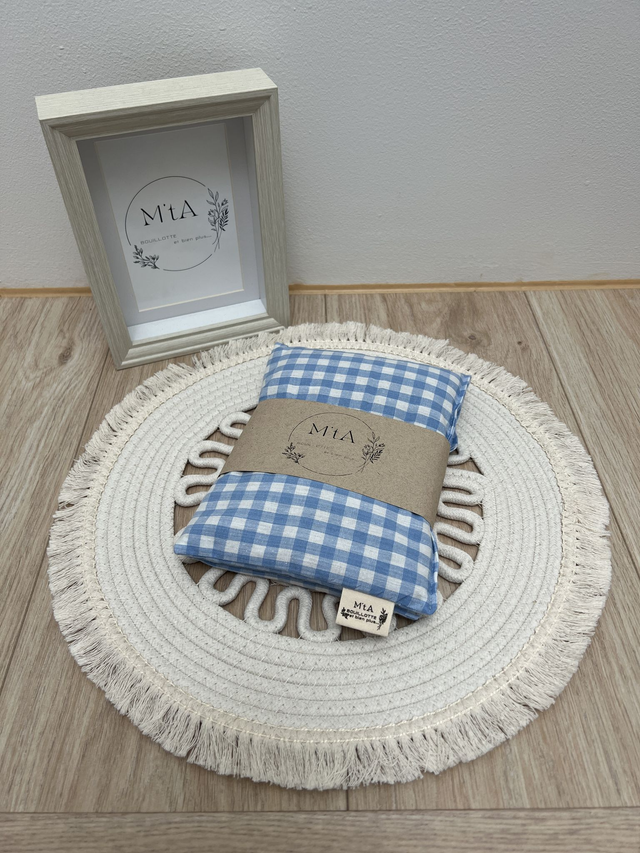 Fabrication artisanale, cousue à la main dans un tissu 100% coton et garnies de graines de lin.